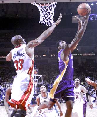 Bryant flips up the acrobatic reverse finger-roll.
